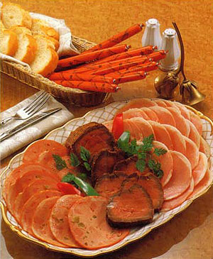 ノンスモークでさっぱり風味のホワイト・ロースハム、スパイシーな香りとソフトな味のローストビーフ、盛り付けが美しいローラーデラ、Kウィンナーのグルメチックな4点セットです。
