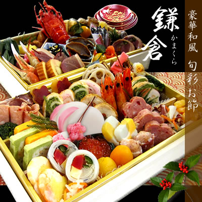 鎌倉ハムが有名高級食材店とコラボして考案した、旬彩なおせちです。 オリジナル白木のお重に入った「鎌倉」は人気を得ていますのでお早目にどうぞ・・・