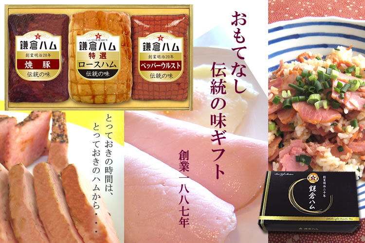 JAS特級がついた特選ロースハムをメインにご贈答の定番の焼豚と添え物に